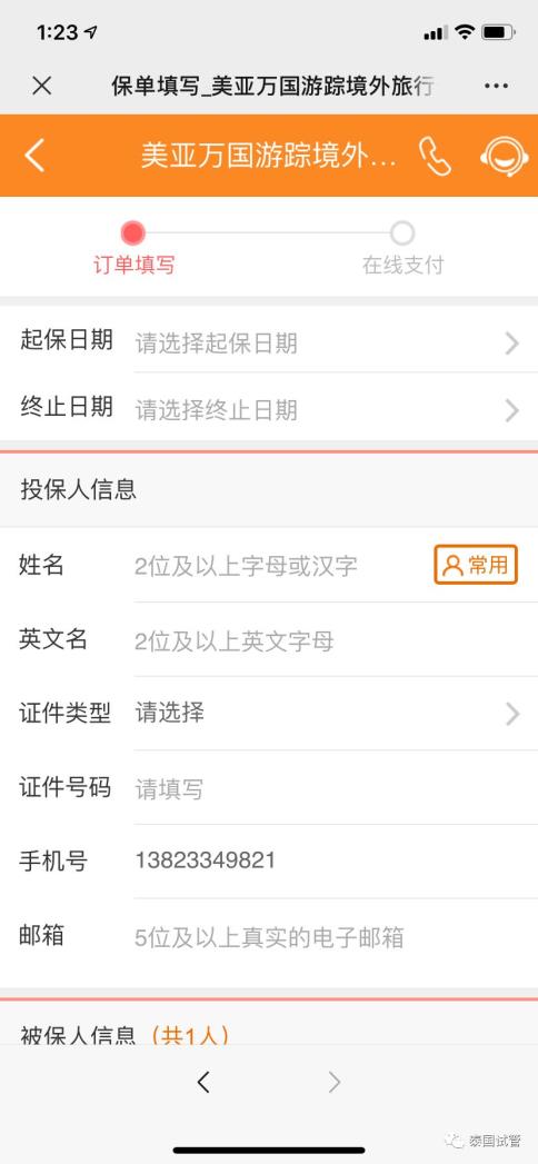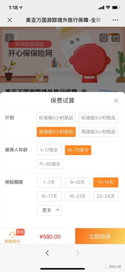 **泰国试管婴儿的用户能够直接联络**企业帮采办就好。也能够自身采办,费用大概580元,现在较为便利的保险采办能够选取:采办方法:1 翻开链接首页面会弹出保证详情,由于出境须要保额是10万美金,因此咱们能够选取高质5小时里面有医疗保证100万人民币的保证,换算美金已然充足出境需要的保证额度。2 点击立刻采办:接着选取年龄和限期,由于试管婴儿根本全是生育年龄因此选取18-70岁,(假设有带孩子或者超越70岁的老人则能依据须要自身选定),限期根本试管婴儿每次去须要12-13天,往返日期根本是14天的,因此选取11-14天。3 点击立刻投保:输入投保日期,个体数据,和邮箱(投保日期能够选取和航班起程当天和航班回程的时间,如此保险失效就是从这个期间开启失效的。假设由于特殊时间输入了投保日期,但实际起程时间推延了,如此保险日期也会根据投保日期开启计算时间的。)4 支付费用:最终选取自身便利的支付方法支付保单费用就好,就会形成电子保单发送到自身的邮箱。电子保单和纸质保单是一样拥有律效益的。自身也能够打印出去起程带上或者出示电子保单。以下是小编提大家的演示流程,就算不懂,只需有微信就能够完全操控啦