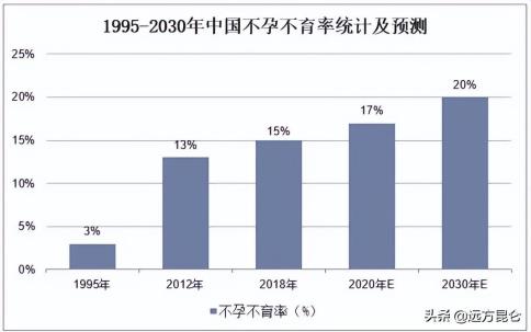 依据《国内不孕不育现状调研研发报表》显现1995年我国育龄人群中不孕不育率仅为3%。如今,我国育龄夫妇的不孕不育率已然升高至约12%-18%,到达发达国度15%~20%程度。按海内育龄人口计算,15%的不孕率也是1个十分大的数字。据预判,2030年国内不孕不育率也许到达20%。