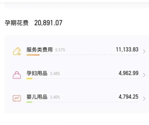 ▲图源网络曲江妇幼入院结算的排队时间较为冗长,最终,咱们得悉,一共能够报销6569.68元。因为住院前交了8000的押金,扣除报销后多出的钱,会从原路退回。但报销还没完毕,由于8000元的报销额度还没用完,因此咱们把产检费用也报销了一部份。这里要注重,用医保卡个体账户的刷卡部份是不可报销的,但现金部份能够。经计算,咱们用现金共耗费了2018.78元,因而通过医保再报销了1400元整。此外,咱们又通过补足医疗保险把医保不可报销的单据,又报销了一部份。但此处就不敞开论述,也不计算了,终究补足医疗不是标配。因而,咱们的实际花销在报销以后成为了——18313.31(产检+制造总费用)-6569.68-1400=10343.63元。这此中,有7215.02元是我通过医保卡个体账户刷卡支付,现金支付部份为3128.61元。4直接花销直接花销就是开销大头了,但这部份又较为个性化,考虑价值最低,因此放到最终分享。我把开销图表从2018年8月1日拉到2019年3月11日孩子出身,这8个多月,共计耗费20891.07元。再以后的花销就算是养娃账。