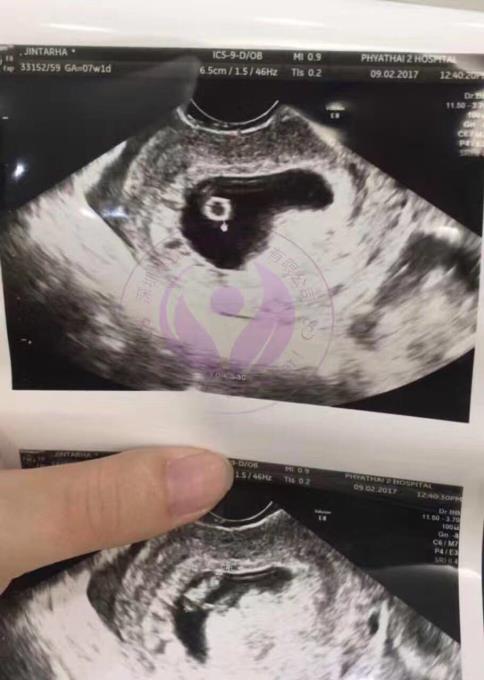 咱们两人成亲后就总是处于备孕状况,也不知晓什么原因总是都没有怀上,家里面也是总是在敦促着,这让咱们也是备受压力。因两人工作太忙时间感知不足用,紧随时间渐渐的流失2个才开启思想到再如此下去是不行的要否则都不知晓啥时候才能够有自身的宝贝。常常途经娱文场合看见那些孩童的欢声笑语心里也是雀跃的!在看见这类情景之余每每刺激着我,因而当时决议抽暇时间2个人去医院检验看看见底是啥弊端? 在医院检验后拿了报表单是我太太问题多囊卵巢,造成每个卵泡长大不能排卵,成熟的卵子就如此凋落了。知晓了症状后咱们就到处寻医,可**的结果还是没有多大成效,金钱耗费了不说还耗费了如此多时间耽搁了病情。经过这一系列的中转周折最终经同伙简介选取了去泰国做试管,在疗程中进展还算是较为顺遂的,咱们选取2015年末去的泰国,试管细节在这里就不说如此多啦,因本身是多囊胚胎也就多了,经判定还有5男8女的健康囊胚,这结果还是很满意的。因咱们工作原因还有我太太的肌体状况咱们选取了下次过来移植冷冻胚胎,因而咱们2个选取回国了。 在2016年5月选取移植了冷冻胚胎,高兴的是一次就顺利了不必再跑一趟了,这给咱们莫大的快慰。验孕顺利后回国咱们悉心呵护着这小宝贝每次全是根据医师吩咐定时产检,不敢怠慢了。这是产检第9周B超照片。