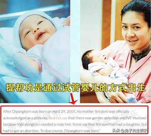 玛哈·哇集拉隆功从策划怀孕到孩子出身,一共用了四年时间,终究在53岁的时候生下了1个孩子,那时西拉米王妃也已然34岁,属于高龄产妇,两人选取试管婴儿也是无奈之举。终究在玛哈·哇集拉隆功年青的时候,荒淫无度,造成肌体亏空严重,好在当时试管婴儿的技术已然成熟,以及能够自由筛选脾气,完好处理泰国王室没有男人承继人的难题。